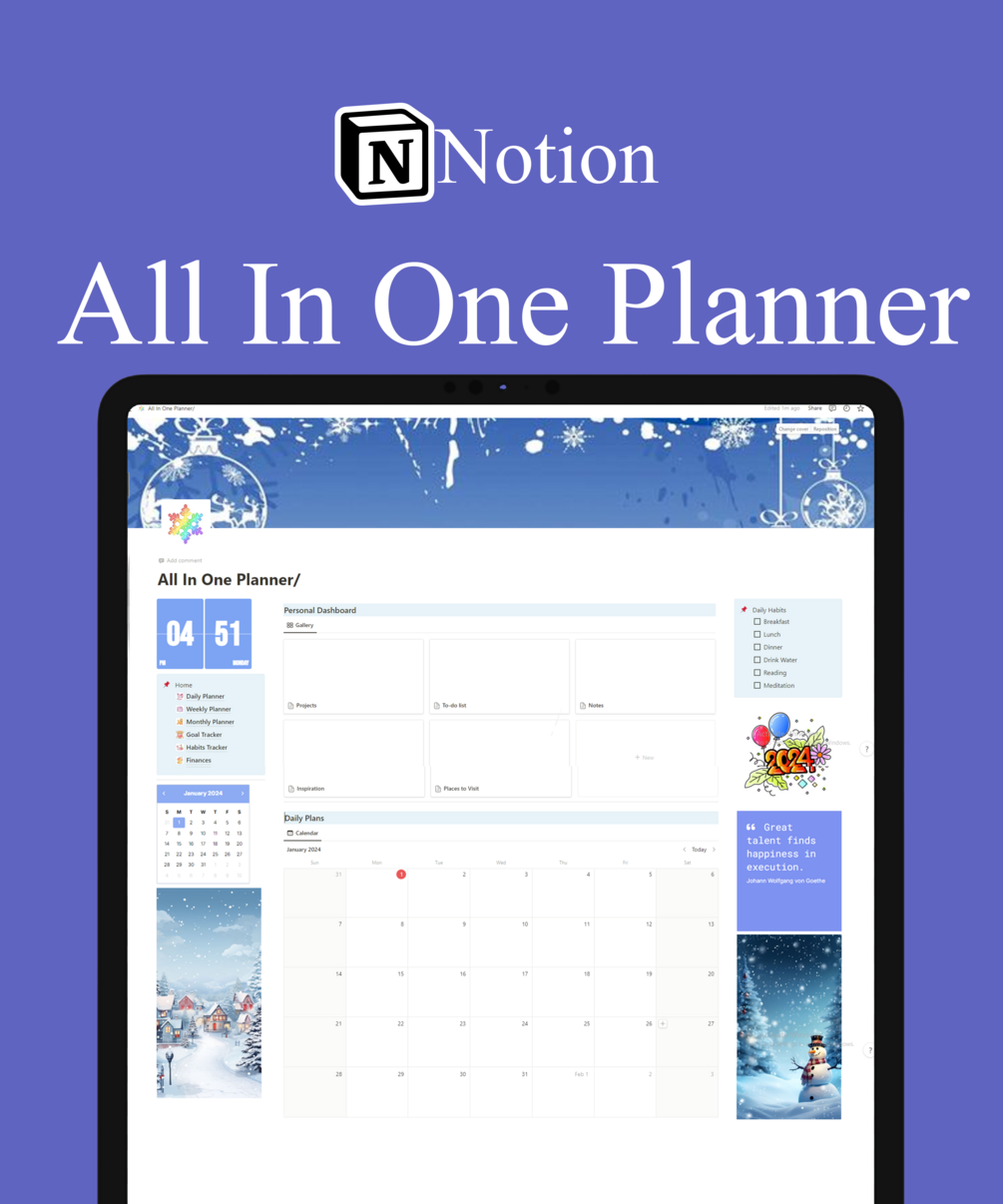 The All In One Planner is a comprehensive tool that helps you stay organized and manage your daily, weekly, and monthly tasks. With a variety of planner templates and trackers, you can easily plan your schedule, set goals, track habits, and manage your finances all in one place.